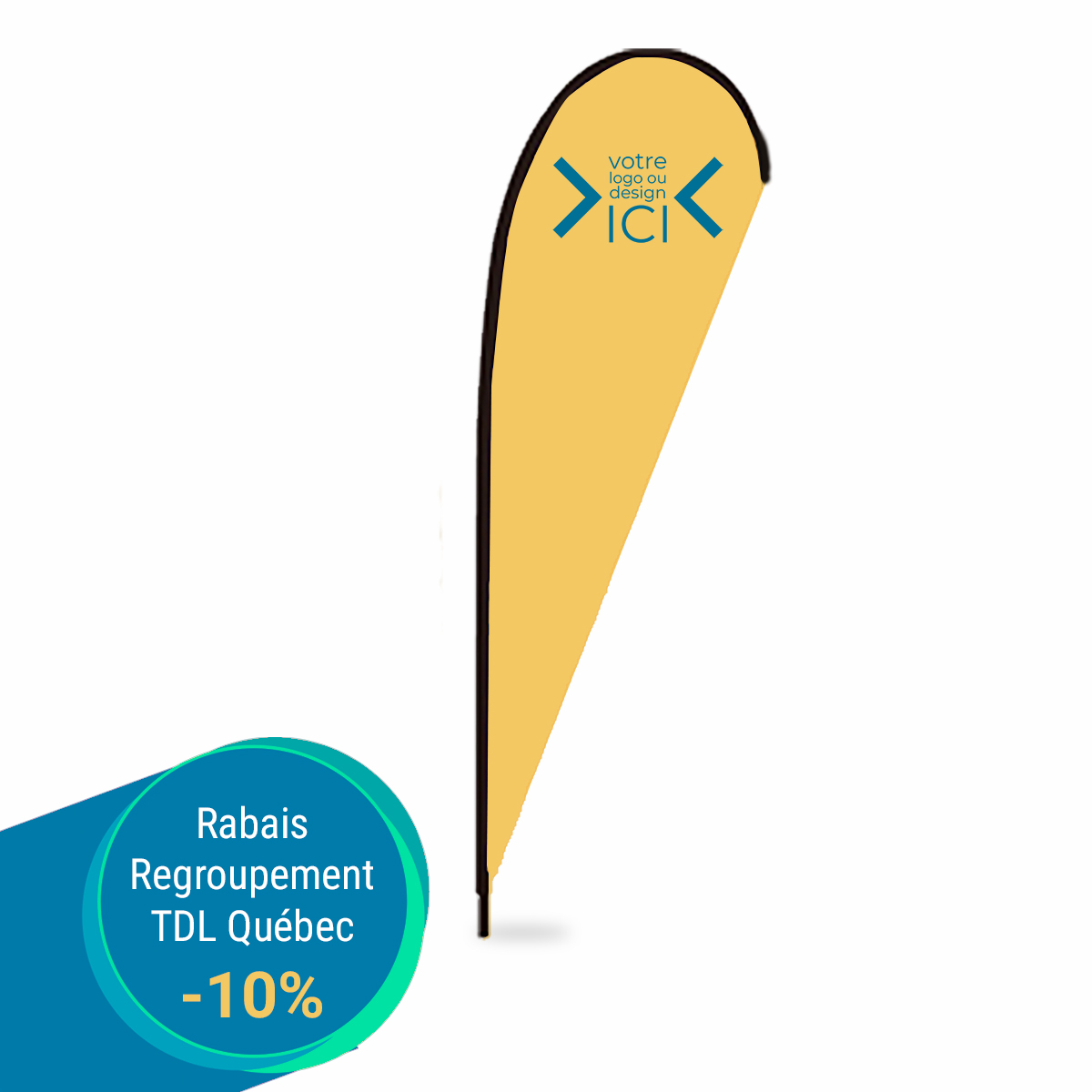 Nos drapeaux plume de modèle goutte sont disponibles en plusieurs grandeurs pour s’adapter à vos besoins promotionnels. Chaque forfait comprend un tissu polyester avec impression graphique personnalisée, une base à piquet pour l’extérieur et un mât en fibre de verre.